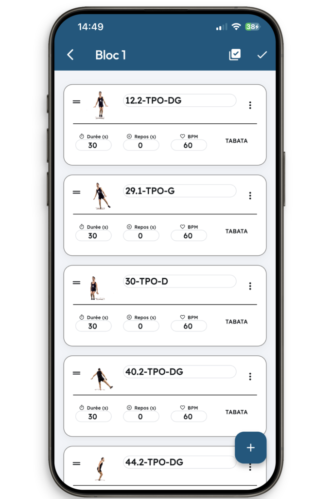 Préparez vos séances rapidement, structurez vos blocs et suivez votre cours en temps réel sans perdre en énergie. Chaque étape est guidée pour vous permettre de rester concentré sur l’essentiel : vos participants et la qualité du cours.